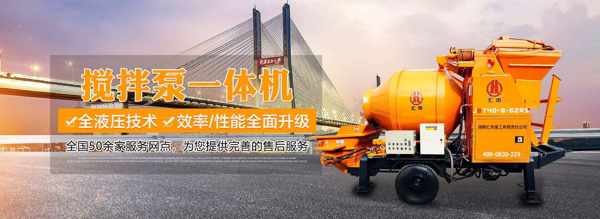 湖南匯杰重工有限責任公司于1999年成立,是一家專業研制生產HBT40-90系列拖式混凝土輸送泵、JBT系列攪拌一體泵、HBTSD隧道泵、車載式泵、WDB300-800系列穩定土拌合站、HZS50-180混凝土攪拌站。 公司產品出口非洲、菲律賓、越南、馬來西亞、尼泊爾等國。 公司現發展為二個生產基地:一工廠(長沙市天心區暮云工業園),二工廠(長沙經開區汩羅產業園,占地60畝,建設年生產量泵送設備1500臺、攪拌設備800臺現代化工廠,于2019年年底投產)。